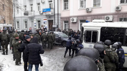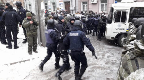 Коли із зали суду почали виходити “тітушки Труханова”, між ними і націоналістами зав’язалася бійка. Поліція спробувала їх розборонити.
