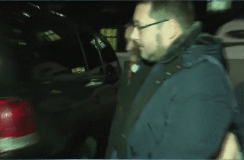 Підозрюваного у кайданках вивели з урядової будівлі. Свідками події випадково стали тележурналісти каналу “Прямий”.