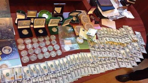 У начальника Шосткинського відділу поліції під час обшуку виявили десятки тисяч доларів, золото, колекцію монет, вогнепальну і холодну зброю, а також прапор Російської Федерації. Про це повідомила прес-секретар генерального прокурора Лариса Сарган. Приводом до обшуку начальника відділку поліції Шостки стало затримання на хабарі в 7 тис. грн його заступника. Аби викрити інших працівників поліції, причетних до злочину, прокуратура Сумської області спільно з Управлінням внутрішньої безпеки провела обшук у кабінеті і помешканні начальника міського відділу поліції. “Під час проведення слідчих дій в будинку керівника виявлено та вилучено вогнепальну зброю, значну кількість…