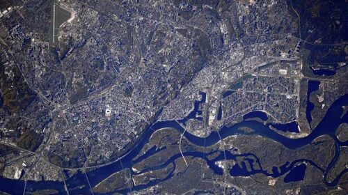 Американський астронавт Рендольф Брезнік, який зараз перебуває на борту Міжнародної космічної станції, виклав у себе у Фейсбуку знімки, як Київ виглядає з орбіти Землі. Ренді “Комрад” Бреснік розмістив чотири фотографії. На перших двох – краєвид Києва з космосу. На першому знімку важко щось розібрати. А на другому, більш наближеному, видно Дніпро, мости через нього і найбільші об’єкти Правого берега Києва, зокрема НСК “Олімпійський” і аеропорт “Жуляни”. Лівий берег Києва астронавт не сфотографував, через що на нього в коментарях ображаються користувачі. До космічних фото столиці України Брезнік додав зображення Софії Київської…