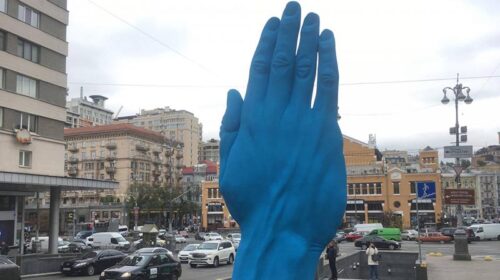 На бульварі Тараса Шевченка, біля колишнього пам’ятника Леніну постав арт-об’єкт «Middle Way» румунського скульптора Богдана Раци, повідомляє «Український репортер». Як зазначає у Фейсбуку КМДА, скульптуру встановлено тимчасово – в рамках ініціативи Віталія Кличка «Київ – місто світу», відповідно до звернення Посольства Румунії в Україні. За задумом автора, велетенська синя рука символізує дружбу та спілкування. Фото УНН Like
