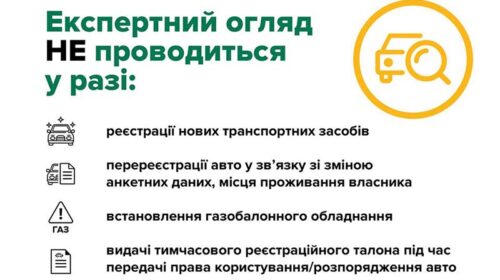 Про це повідомляє «Український репортер» із посиланням на Головний сервісний центр МВС. Відтепер не передбачатимуть обов’язкового експертного огляду такі операції: реєстрація нових транспортних засобів; перереєстрація у зв’язку зі зміною анкетних даних чи місця проживання власника: вибракування авто; встановлення газобалонного обладнання; видача тимчасового реєстраційного талону. Тепер ці послуги після реєстрації в електронній черзі надаватимуться виключно адміністраторами сервісного центру, без потреби проходити експертний огляд. Like
