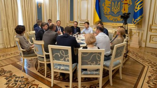 В Адміністрації Президента України відбулася зустріч Володимира Зеленського з керівництвом Верховної Ради та лідерами парламентських фракцій і груп. Під час зустрічі йшлося про дострокове припинення повноважень Верховної Ради восьмого скликання та призначення дочасних парламентських виборів, – повідомляється на офіційному сайті Президента України. «Головним аргументом для розпуску Верховної Ради є дуже низька довіра громадян України до цієї інституції – 4%. Це – оцінка роботи парламенту і найвагоміший аргумент для припинення його повноважень. Я як гарант Конституції зобов’язаний гарантувати права громадян України. Юридична підстава для розпуску – з 2016 року не існувало…