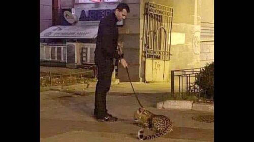Жителі Києва помітили на вулицях столиці чоловіка, який вигулював леопарда. УНН стали відомі деталі цієї незвичної ситуації. Леопард та його господар були помічені неподалік Ботанічного саду на перетині вулиць Назарівської та Льва Толстого. Як виявилося, “кішка” та її господар мешкають неподалік. Цікаво, що на прогулянку сьогодні виводили “кошеня” – 3-місячну дівчинку. “Кішка” мешкає зі своєю трирічною матір’ю, але на прогулянку в місті дорослу “кішку” не виводять. Like
