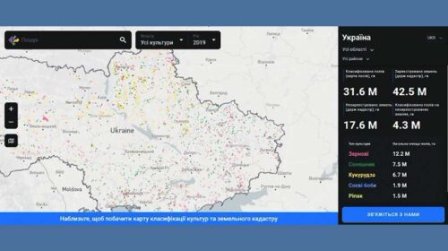 Після запуску інтерактивної супутникової карти було виявлено, що площа аграрних ділянок більша, ніж зазначено у кадастрі – всього полів на незареєстрованих землях близько 4,3 мільйона гектарів. Дані проаналізувала міжнародна компанія, яка спеціалізується на аналітиці супутникових знімків EOS Data Analytics, – повідомляє Економічна правда. Зокрема, за допомогою супутникових даних вдалося визначити фактичний розмір сільгоспугідь України. Наприклад, можна побачити, що площа посівів ріпаку в Херсонській області, за даними супутників, складає 117,8 тис. га. Це на третину більше за інформацію у кадастрі. Або ж, на прикладі Дніпропетровської області видно 136,4 тис. га полів…
