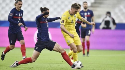 Перший матч нового циклу світової першості національній збірній України випало проводити на полі переможця попереднього мундіалю — команди Франції. Господарі вели позиційний наступ, а гості, зберігаючи концентрацію та компактність на своїй половині поля, вичікували можливості для контрвипаду. По-справжньому гаряче у володіннях Бущана стало на 11-й хвилині, коли Жіру після проходу Ернандеса з кількох метрів не влучив у площину воріт. А за вісім хвилин Франція вже була попереду: Грізманн із кута штрафного майданчика закрутив м’яч під дальню стійку. Поступаючись у рахунку, синьо-жовті почали частіше гостювати на половині суперників. Справжніх загроз до…