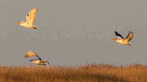 Читати даліНа Одещину прилетіли червонокнижні кучеряві пелікани