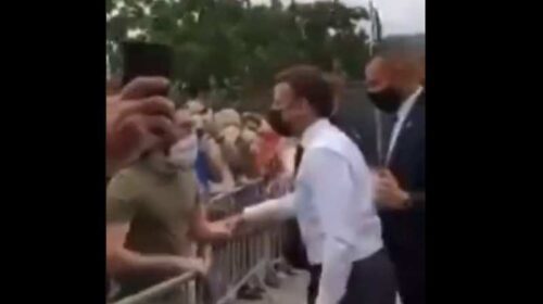 Під час робочого візиту 8 червня президента Франції Емманюеля Макрона до міста Дром, що на південному сході країни, невідомий чоловік вдарив його по обличчю. Інцидент зняли на відео й виклали в соцмережі. Про це повідомляє французький телеканал BFM-TV. Інформацію про інцидент йому підтвердили в Єлисейському палаці. На відео видно, що Макрон підходить привітатися до людей через низьку огорожу. Він вітається з одним із чоловіків у масці й футболці кольору хакі і продовжує тримати його за руку. Після цього той викрикує щось у відповідь (Le Figaro стверджує, що це слова «Макронізм…