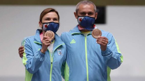 Олена Костевич та Олег Омельчук принесли Україні бронзову нагороду в стрільбі з пістолета з дистанції 10 м на Олімпійських іграх у Токіо. Олена Костевич та Олег Омельчук показали у кваліфікації третій результат та отримали право виступити у перестрілці за бронзу із Зораною Аруновіч та Даміром Мікечом із Сербії. Українці перемогли 16:12 та здобули бронзову нагороду. Таким чином, Олена Костевич, яка несла прапор України та відкритті Олімпіади-2020, подолала традицію, за якою спортсмени, які несуть прапор на церемонії, потім залишаються на Іграх без медалей. У індивідуальних змаганнях у стрільіб з пістолета Олена…
