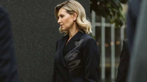 Перзидент України Володимир Зеленський разом із дружиною перебувають з робочим візитом у США. В очікуванні зустрічі з президентом США Джозефом Байденом вони поклали квіти до пам’ятника жертв Голодомору в Україні. Українська делегація і члени посольства України в США відвідали Меморіал жертвам Голодомору 1932-1933 років в Україні, який був відкритий в листопаді 2015 року в центрі Вашингтона. До підніжжя меморіалу президентське подружжя поклало символічні снопи пшениці. Для церемонії вшанування пам’яті Олена Зеленська обрала total look темно-синього кольору – піджак зі спідницею-олівець. Це дуже символічний для такої події образ. Піджак розшитий колосками.…
