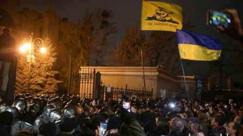 Хода з Майдану Незалежності – близько тисячі активістів – прийшла на Банкову, однак зупинилася на вході до Офісу Президента. Як повідомляє Укрінформ, поліція стала кордоном біля воріт до ОП і не пропускала мітингувальників, вимагаючи пройти поверхневу перевірку. Організатори акції закликали правоохоронців відступити і вільно пропустити людей, без огляду речей. Проте правоохоронці не відступили. Невдовзі сталося невелике протистояння між поліцією і активістами. Після цього люди заспівали гімн України й почали вигукувати “Ганьба!”, “Пропускай!” і “Коридор!”. У свою чергу правоохоронці у гучномовець закликали “дотримуватись вимог поліції” та заявляють, що “проведення поверхневої перевірки…