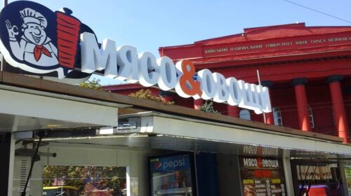 Читати даліБіля Університету імені Шевченка подають “Мясо & овощи” на “общепонятном”