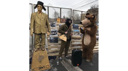 Російським громадянам, які проживають в Україні й вирішили брати участь у виборах президента Росії, біля посольства Московії, що в Києві, на Солом’янці, пропонували пройти до специфічної виборчої кабінки. Тобто в туалет, де чітко було зазначено, куди саме опускати бюлетені, яким освіжаючим засобом користуватися (газом «Новачок»). Але бажаючих пройти на виборчу дільницю не було. Відеосюжет про облогу Московського посольства В бюлетені – низка претендентів на Кремль, ось їхні «прізвища» (російською мовою): Раб на галерах, Путин Хуйло Владимирович, Старик Кабаев, Окурок Бледная Моль, Портфеленосец у Собчака Анатолия, Кум Медведчука В.В., Победитель Вейшнории,…