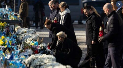 Президент України Володимир Зеленський і перша леді Олена Зеленська вшанували пам’ять загиблих захисників і захисниць України біля Народного меморіалу національної пам’яті в Києві. Про це повідомив Офіс Президента. У церемонії також узяли участь іноземні лідери, які прибули до України в день третіх роковин повномасштабного російського вторгнення: президент Фінляндії Александр Стубб, президент Латвії Едгарс Рінкевичс, президент Литви Гітанас Наусєда, президент Європейської ради Антоніу Кошта, президентка Європейської комісії Урсула фон дер Ляєн, прем’єр-міністр Канади Джастін Трюдо. Також у церемонії взяли участь прем’єр-міністерка Данії Метте Фредеріксен, прем’єр-міністр Естонії Крістен Міхал, прем’єр-міністерка Ісландії Кріструн…