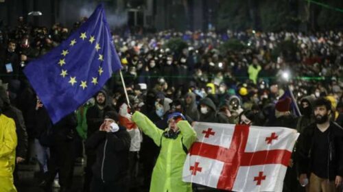 Впродовж кількох днів у Грузії тривають протести проти партії влади “Грузинська мрія”, спровоковані заявою влади про припинення процесу євроінтеграції до 2028 року. У Тбілісі протестувальники продовжували активно використовувати піротехніку, а поліція – сльозогінний газ. Про це повідомляє “Эхо Кавказа”. Відтак четверта ніч протестів у Тбілісі завершилася розгоном мітингувальників на проспекті Руставелі і новими арештами. Зазначається, що близько 5:00 за місцевим часом на проспекті Руставелі спецпризначенці продовжували “заливати газом” протестувальників, а ті “відстрілювалися феєрверками”. Тоді щонайменше двох людей було затримано. Як пише “Эхо Кавказа”, зранку поліція почала затримувати учасників акції протесту…