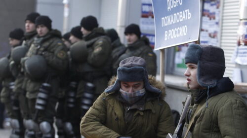 Активісти проти російських банків. Зранку 30 січня в Києві біля низки центральних офісів дочірніх компаній російських банків (“Сбербанк России”, Промінвестбанк, ВТБ-Банк, БМ-Банк та Альфа-Банк) було гаряче. Їх пікетували активісти політичної партії «Національний корпус». Це були такі собі театралізовані виступи з балалайками на тему “забирайтеся геть”, гаслами: “Ласкаво просимо до Росії”. Активісти обклеїли вітрини банків плакатами, вимагаючи закрити пов’язані з Росією українські фінустанови. Відомості про подію зареєстровані в Журналі єдиного обліку заяв та повідомлень про вчинені кримінальні правопорушення та інші події Шевченківського управління поліції, повідомляють правоохоронці. На фото: пікет біля “Сбербанка…