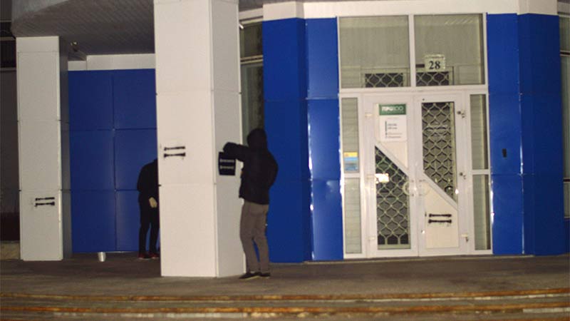У ніч на понеділок, 13 березня, по всій Україні невідомі заблокували роботу десятків банкоматів російських банків. Отвори у банкоматах залили монтажною піною, а екрани, вітражі та двері банків заклеїли наліпками з тегом #RUSBANKOVER.