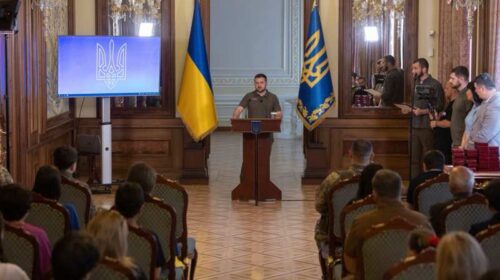 З нагоди Дня журналіста Президент України Володимир Зеленський вручив державні нагороди українським працівникам медіа і членам родин журналістів, які загинули через повномасштабне вторгнення росії. Про це повідомляє пресслужба Офісу президента. Глава держави висловив подяку всім журналістам, які впродовж 103 днів цього вторгнення та восьми років війни російської федерації проти України талановито, людяно й від щирого серця виконували свою роботу як у кадрі, так і поза ним. «Не хочеться говорити зайвих слів і забирати ваш час. Я думаю, що журналісти краще за всіх знають, що таке ціна слова і ціна часу.…