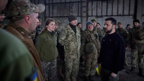 Президент Володимир Зеленський під час робочої поїздки в Донецьку область відвідав передові позиції українських захисників на Бахмутському напрямку та вручив військовослужбовцям державні нагороди. Про це повідомляє пресслужба глави держави. Як зазначається, Президент заслухав доповіді про оперативну ситуацію та перебіг бойових дій на ділянці фронту, а також поспілкувався з військовослужбовцями та подякував їм за захист України. «Маю честь сьогодні бути тут, на сході нашої держави, на Донбасі, і нагородити наших героїв, подякувати вам, потиснути руку. Подякувати за те, що захищаєте державу, суверенітет, схід України», – сказав Зеленський. Присутні вшанували хвилиною мовчання…