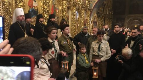 До Києва 11 грудня привезли Вифлеємський вогонь. Пластуни принесли його у Михайлівський золотоверхий собор, де всі охочі зможуть протягом різдвяних свят запалити від нього свічечку та принести Вогонь у свій дім. Вогонь єдності приймав Митрополит Епіфаній. “Зустрічаємо цей вогонь, який свідчить, що світло завжди перемагає темряву” — прокоментував Владика. Вогонь усім охочим роздають у Михайлівському соборі. Уже 12-13 грудня вогонь відправиться з Києва до обласних центрів, а також Краматорська і Конотопа, додали в Укрзалізниці. “Цієї зими скаутська традиція має для українців особливе значення. Коли всі українці живуть в умовах обстрілів та відключення електроенергії,…