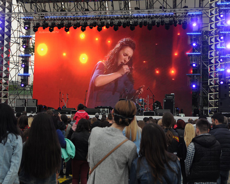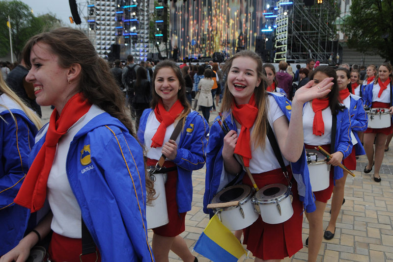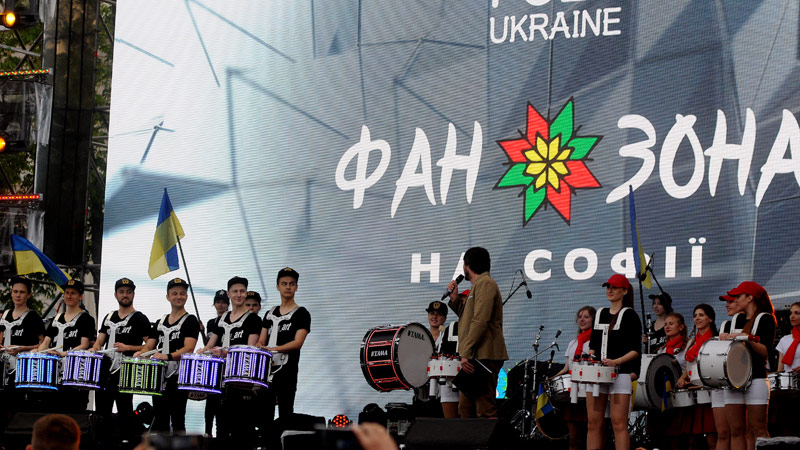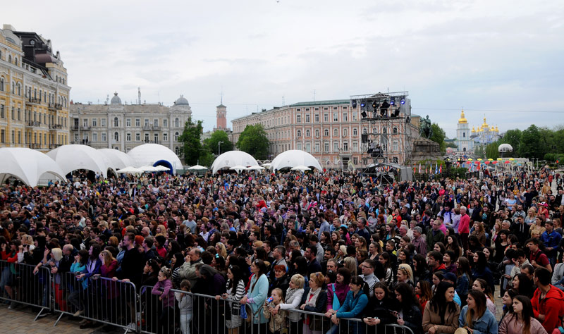 Будьте, як удома, кажуть гостям кияни, які прийшли на відкриття цього містечка. Майже тисяча – стільки людей прийшло на цей святковий захід. Софійська площа у Києві стала співочою. Тут відкрили фан-зону Євробачення.