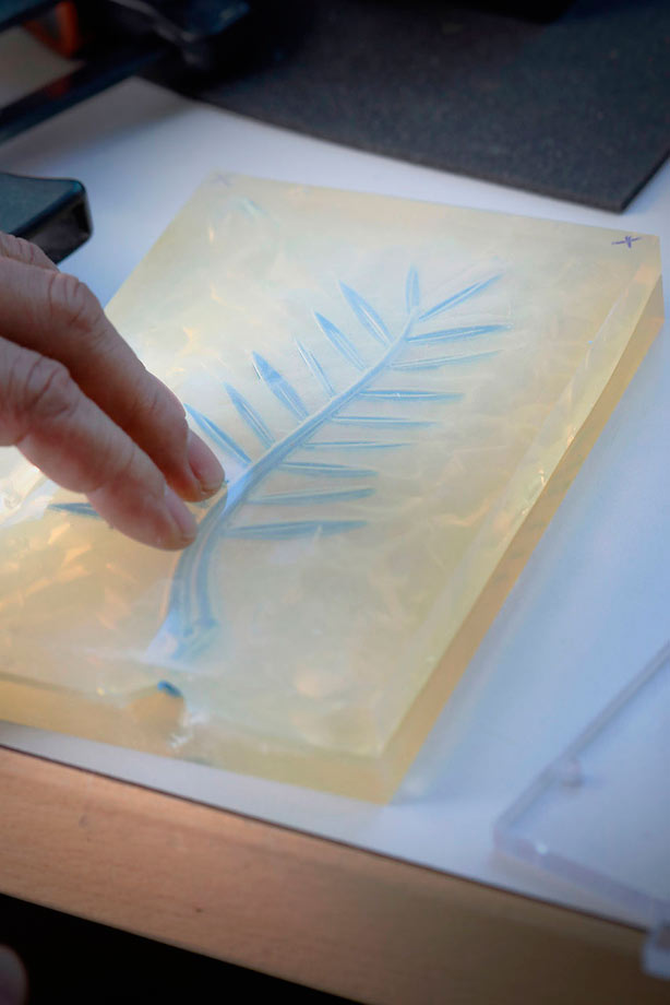 Процес виготовлення «Золотої пальмової гілки» триває близько 40 годин і проходить в кілька етапів. На першому етапі малюють ескіз нагороди.
