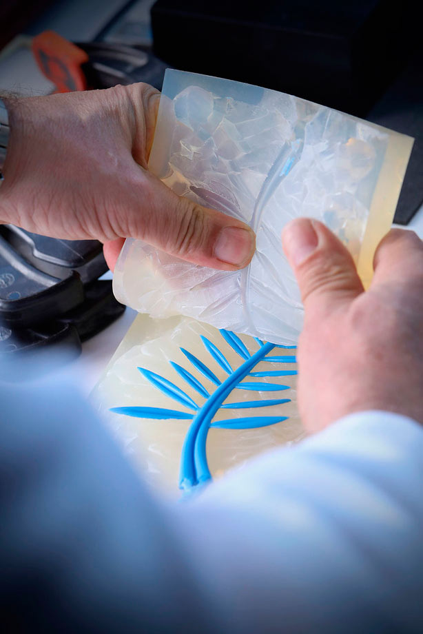 На наступному – виготовляють форми для відливу гілки. Для цього спочатку роблять воскову основу, після чого її перевіряють на відповідність ескізу і дефекти.