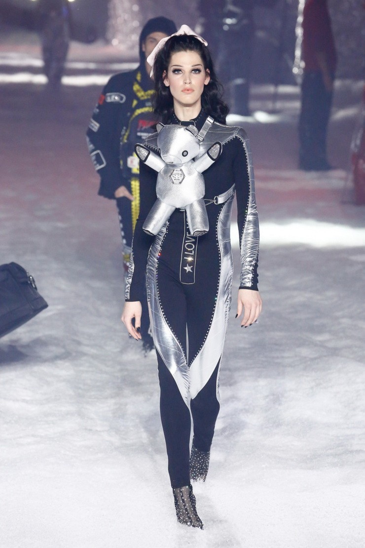 Колекція Philipp Plein – феєричне шоу дизайнера нагадувало сцени із кінофільму “Трансформери”, моделі прилетіли на подіум на літаючій тарілці, а допомагав їм один із трансформерів.