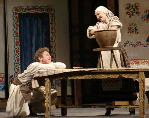 «У режисурі Петра Ільченка і сценографії Андрія Александровича-Дочевського “Кайдашева сім’я” – це, передусім, театр, видовище. Ходять туди-сюди на передньому плані музики, дівчата й хлопці викочуються на гульбище, розігрують свою комедію баба Палажка і баба Параска…