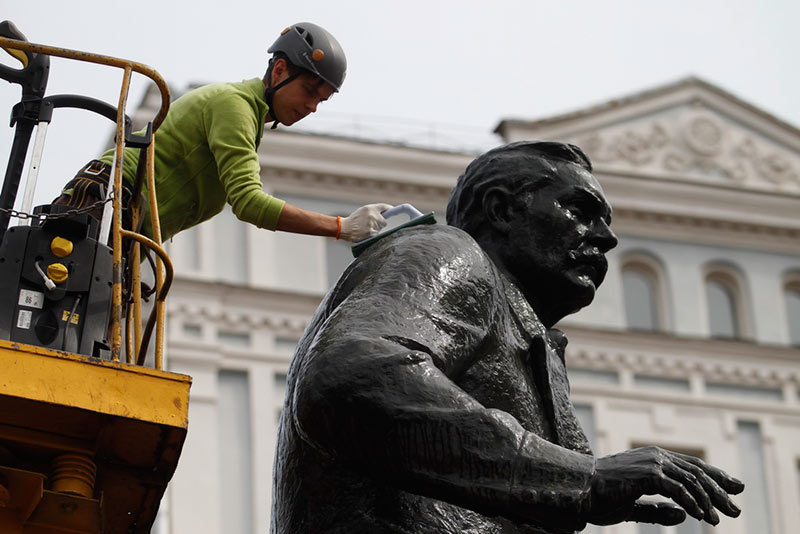 Нагадаємо, пам`ятник Миколі Лисенку встановили на Театральній площі столиці (адже композитор-класик більшу частину свого життя провів у Києві) понад півстоліття тому, в 1965 році. Скульптор Олександр Ковальов виготовив монумент ще в 1946 році. І лише через два десятиліття завдяки відомому українському архітектору, лауреату Шевченківської премії Василю Гнєздилову пам`ятник українському композитору постав перед киянами і гостями столиці таким, яким ми бачимо його і сьогодні.