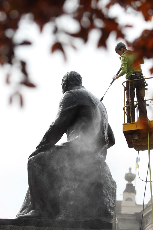 Сьогодні в межах акції “Чистий день” помили пам`ятник видатному українському композитору, засновнику національної класичної музичної школи Миколі Лисенку.