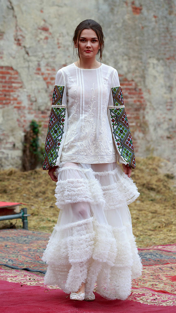 «Моя нова fashion-історія показала у квітучих Митрополичих Садах моду як театр, – каже Оксана Караванська. – Цього разу мене надихнули автентичні українські весільні обряди. Що може бути красивішим за білий цвіт на зеленій траві, особливо під містичний акапельний багатоголосий спів?!».