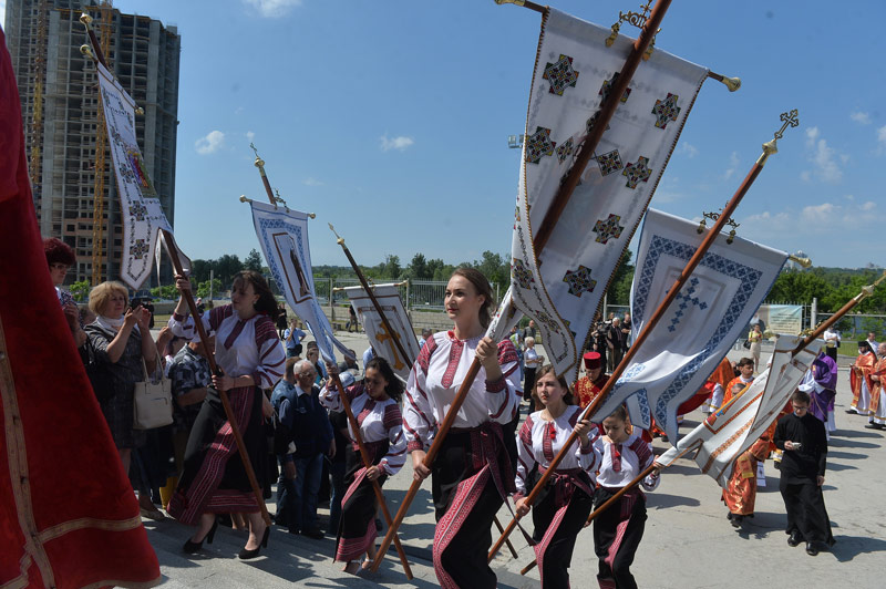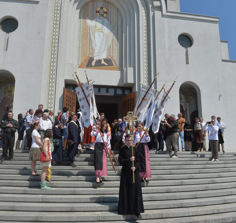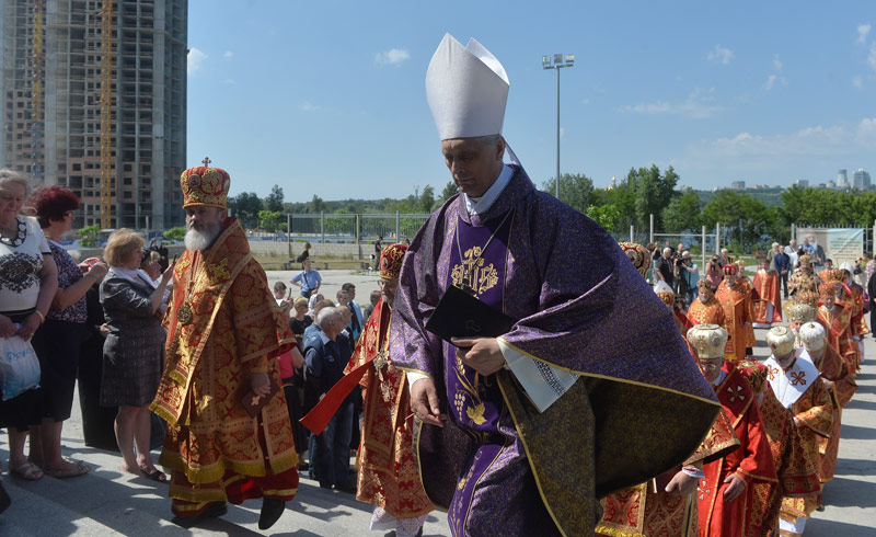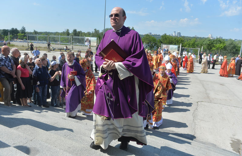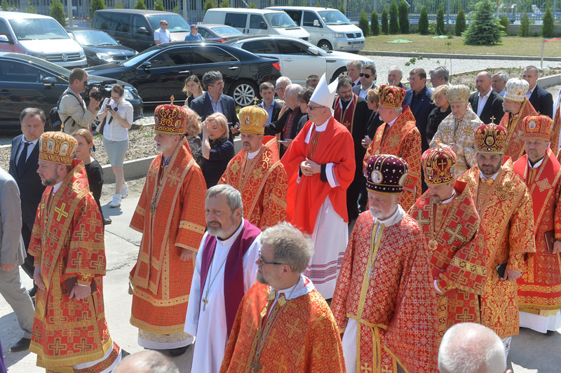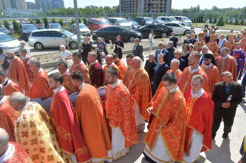 Процесія під проводом глави УГКЦ Святослава Шевчука пройшла до окремого входу в спеціальне підвальне приміщення храму для поховань (крипт), куди й занесли труну.