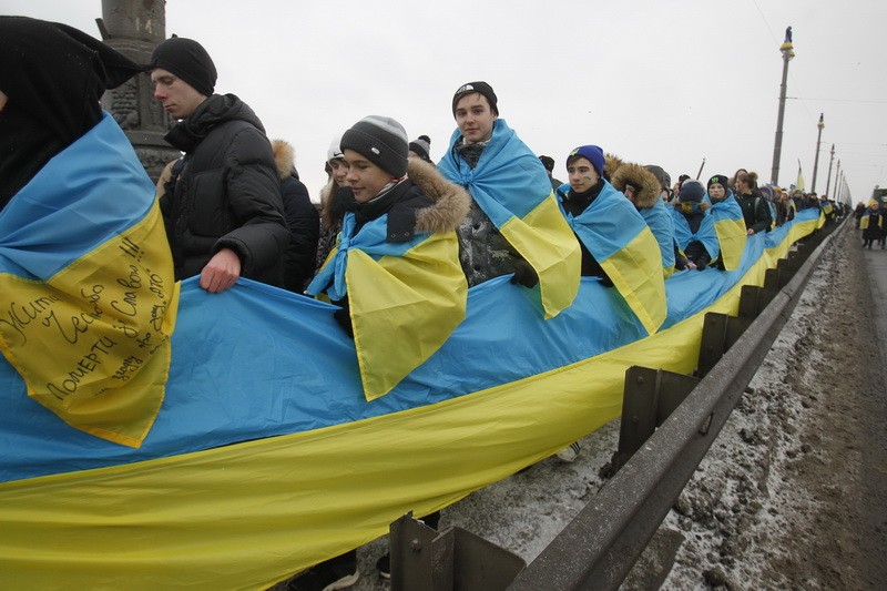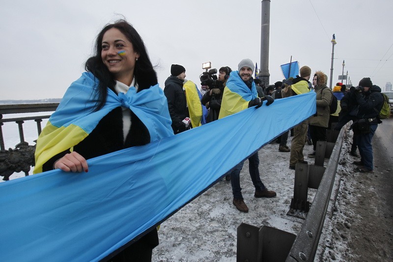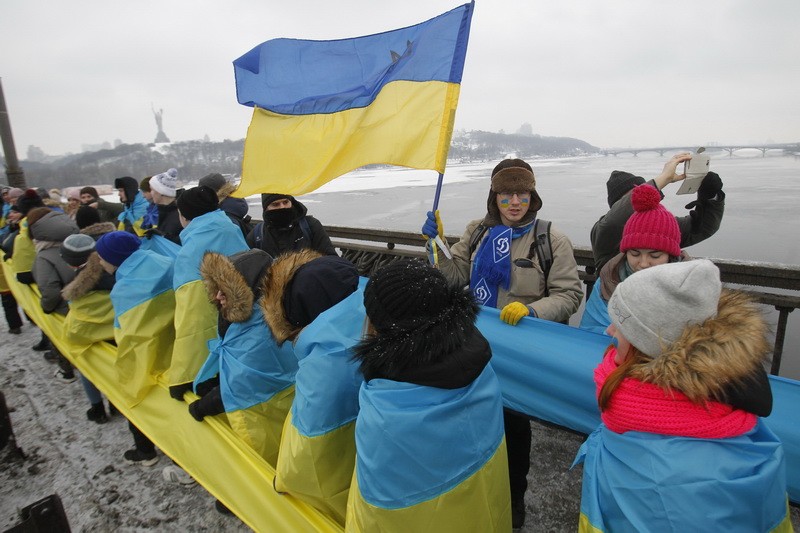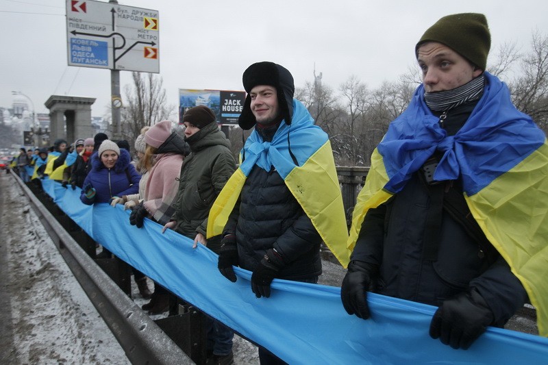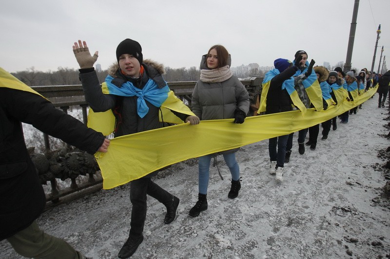 У Києві на мосту Патона  люди утворили “живий ланцюг Соборності”, який з’єднав обидва береги Дніпра. Акцію приурочили до 99-ї річниці Акта Злуки – об’єднання Східної та Західної України в одну державу.