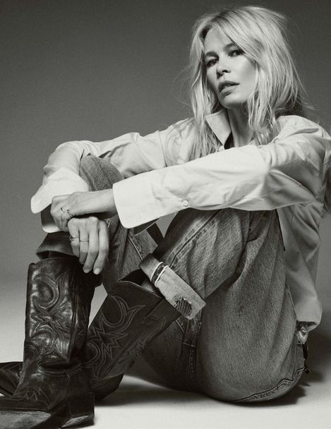 Зокрема, супермодель позувала у стилі оверсайз-денімі, сорочках, брюках із завищеною талією і об’ємних светрах. Доповнювали образи ковбойські чоботи, які обіцяють стати головним трендом осені, а також грубі шкіряні ремені з важкими металевими пряжками.
