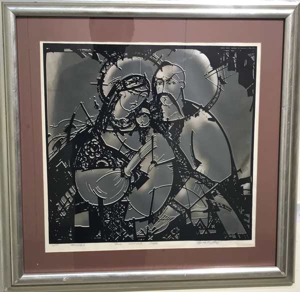 Виразно прочитується одвічний образ Матері Божої. Бере за душу. Не відпускає. І яка ж складна та важка техніка виконання! Папір, шовкодрук. «А погляньте які тут відтінки, – каже Алла Маричевська. –Тони, напівтони. І сіре тло, схоже на срібло». Дивовижна робота.