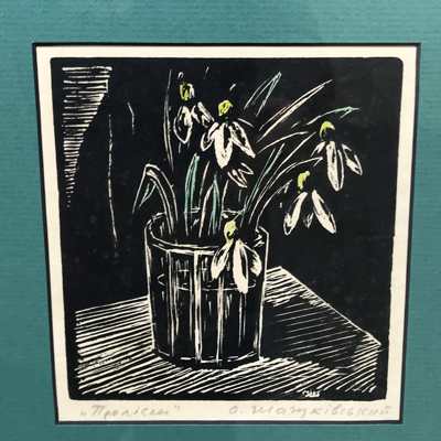 «П’ята люта весна», – додає Алла Маричевська, наголошуючи на складності техніки у цій роботі. «Тут і дереворит, і акварель. Дуже дивне поєднаня кольорів з чорним».