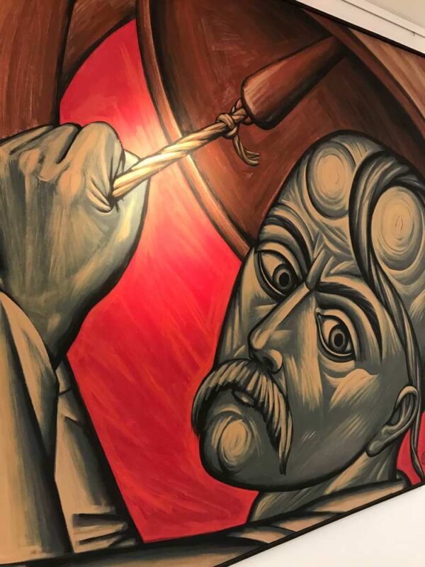 – Для мене ось це полотно – як наша сучасна українська історія, – каже директор Дипломатичної академії Ігор Осташ. – Якщо подивимося пильно на картину, то побачимо сліди від беркутівських куль. Вони не пробили полотно. Яка ж колосальна сила цієї картина! Сила Господа… Можемо вважати, що ця робота і про початок нинішньої війни. Загалом для мене ця виставка наче і про сьогоднішній день. І я завжди, коли бачу ці «Очі», подумки повертаюся на Майдан Гідності, розмірковуючи, який же у нас великий український народ, яка у нас потужна нація! Який ще народ може упродовж чотирьох років протистояти величезній навалі зі сходу?!