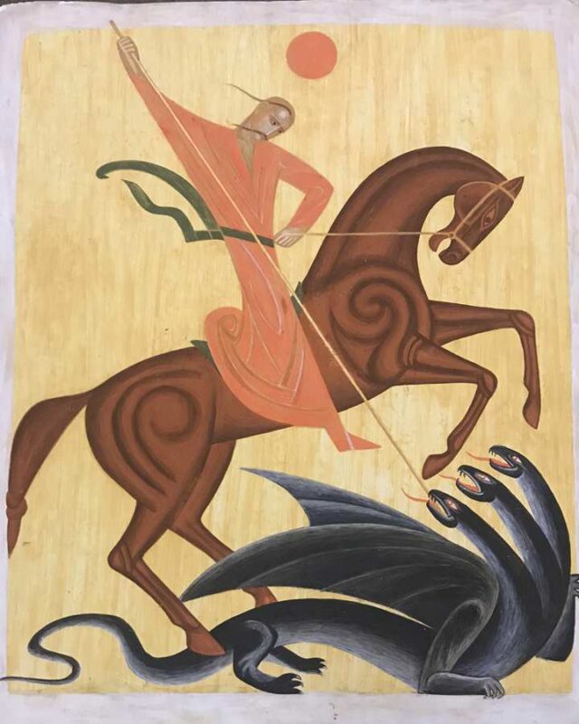 Хоч сам митець каже, що нині важко бути оптимістом. Олександр Іванович пояснив дещо про «Змієборця». Зображено триголового змія. «Я вже у ті роки, коли писав цю роботу, мав на увазі три тодішні імперії, які нас намагалися знищити, поглинути: турецьку, польську і російську. Сьогодні залишилася лише одна імперія – російська. Поки вона не розвалиться – спокою не буде».