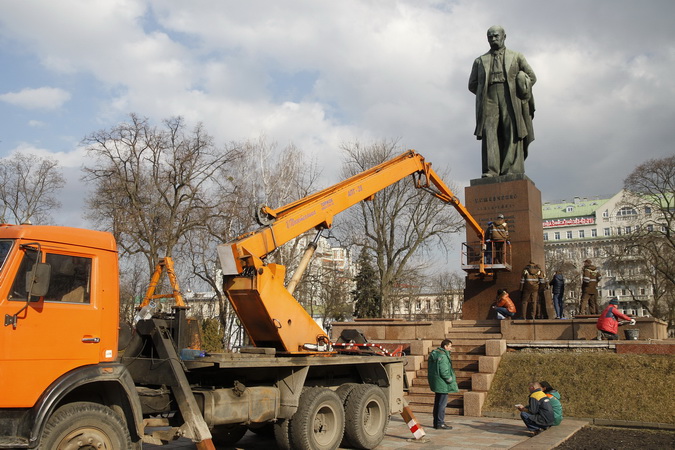 Не пошкодувавши дорогого шампуню, комунальники помили постамент та написи, а от сам пам’ятник – лише чистою водою під потужним струменем. Головне, змити бруд десятиліть, але не пошкодити благородний зеленкуватий наліт пам’ятника, переконують фахівці. Тому на гранітний постамент було нанесено спеціальну захисну емульсію.