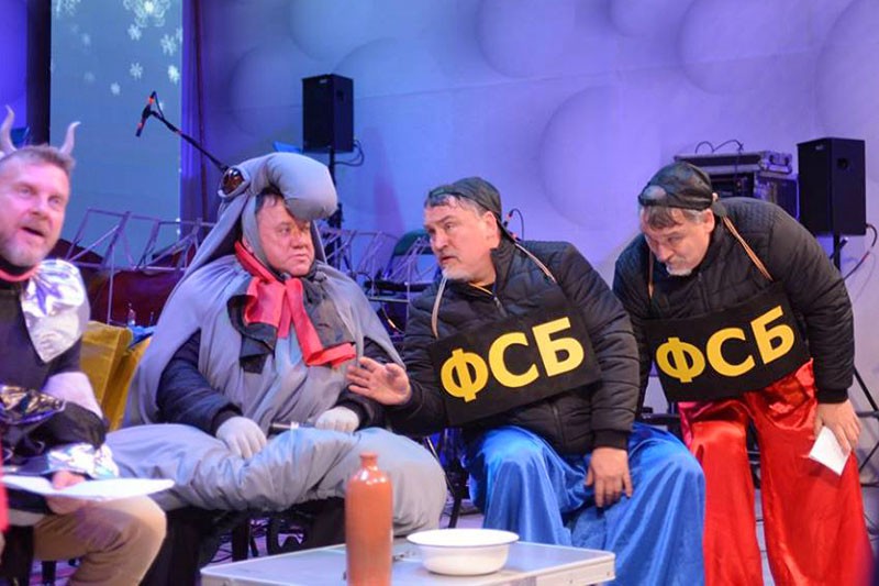 У “преподобну” Солоху майстерно перевтілилася письменниця Лариса Ніцой. Оксану грала співачка Анжеліка Рудницька. “Різдво – це час зустрічей старих друзів, знайомства між собою гарних людей і взагалі єднання”, – написала про це дійство на своїй сторінці у Фейсбуку Анжеліка.