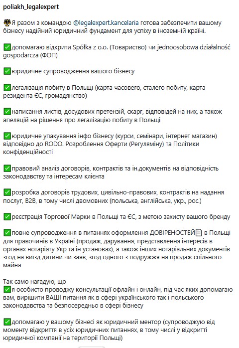 Instagram https://www.instagram.com/poliakh_legalexpert?igsh=MWR6dnplZDM0NW0zMA==