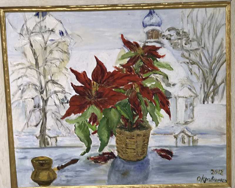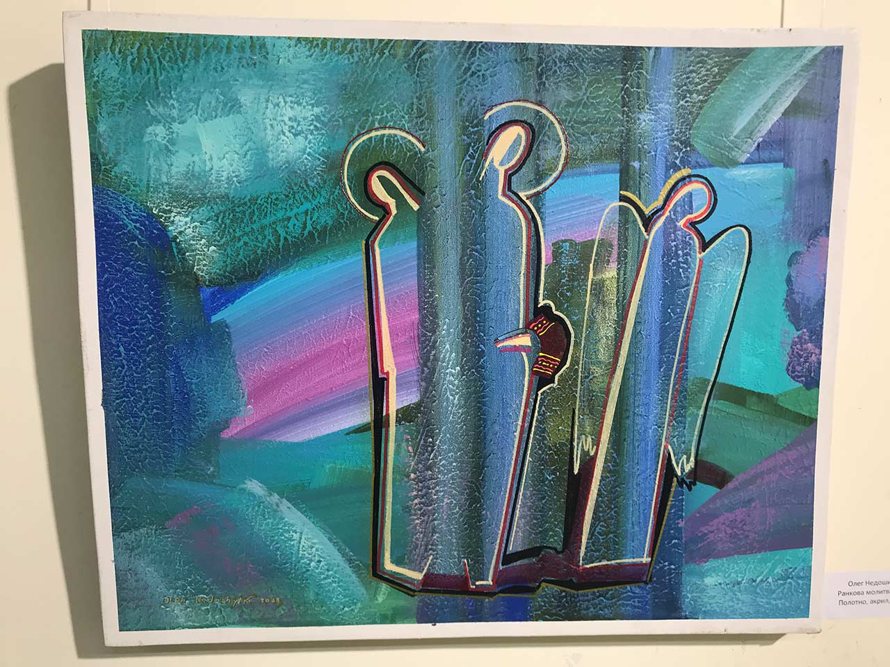 Різдвяній тематиці (і не тільки їй), до речі, присвятив свої роботи й сам Михайло Олександрович, чиї картини також експонувалися на виставці «Срібне сяйво зими» (на світлинах нижче).