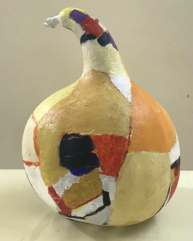 Ми бесідували з Михайлом Поживановим і про незвичні роботи на цій виставці. Наприклад, одеський митець Сергій Савченко, член Національної спілки художників України, розмальовує природні форми – таракуци (вони дуже насичені кольором); є у нього і дерев’яні скульптури. Савченко полюбляє контрасти – колірні, тональні, контрасти форм. Якось художник сказав, що це – його характер, і “він вимагає такої мови”. Мабуть, все це й привело, за словами митця, “до формування в скульптурі безкінечної структури”. Вона стала для Савченка ” власне формулою малярства…”.