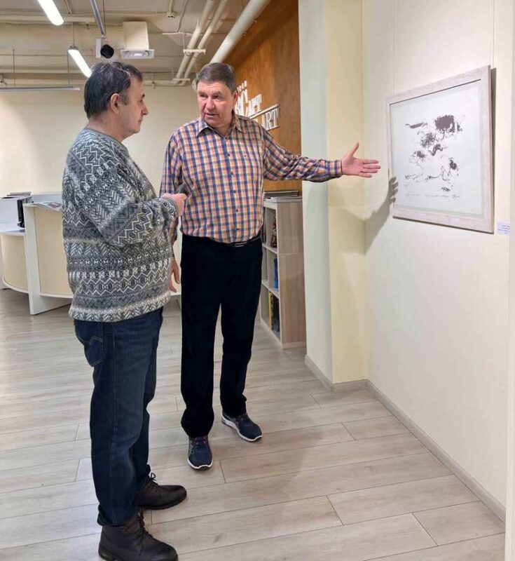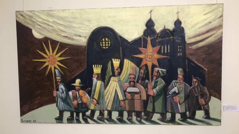 – «Срібне сяйво зими» запам’ятається ще й тим, що тут було представлено різні стильові напрямки, – каже Михайло Поживанов. -Так, Народний художник України Михайло Сипняк захопив відвідувачів своєю різдвяною тематикою. Загалом творчий доробок Михайла Сипняка складає кілька тисяч робіт, серед яких є серії, які особливо до вподоби шанувальникам – «Вертепи», «Чумаки».