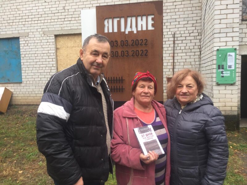 Першим оповідачем був Іван Петрович Пільгуй. У катівні Ягідного побувала вся його родина (три покоління, 10 чи 11 осіб): він з дружиною, двоє синів з невістками і по двоє онуків. Іван Петрович до повномасштабної війни працював у школі завгоспом, а коли після всіх подій почали приїжджати делегації ледве не з усього світу, то став екскурсоводом. Господар, свідок, оповідач. Людина, яка доглядала цей понищений дитсадок і школу. Трохи згодом інші жіночки почали розповідати. Багато хто відмовляв.