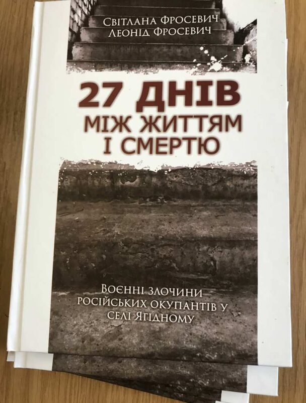 У Києві в Товаристві «Знання» України відбулася презентація книжки «27 днів між життям і смертю». То є документальні свідчення про воєнні злочини московитських окупантів у селі Ягідне на Чернігівщині, що їх зібрали українські журналісти Світлана та Леонід Фросевичі. Кошти за перші розкуплені примірники автори спрямували на фронт для Окремого полку безпілотних систем «Яструби». Водночас видання вже надіслане на розгляд Міжнародного кримінального суду в Гаазі.