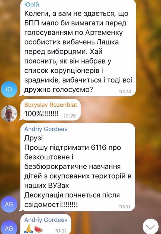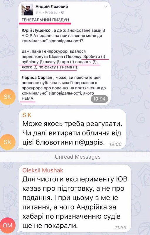 Народний депутат від “Радикальної партії Олега Ляшка” Андрій Лозовий оприлюднив у Фейсбуку чат фракції “Блок Петра Порошенка”. Переписка нардепів рясніє нецензурною лайкою і критикою діяльності “радикалів”. “Вони, наївні, думають, що ніхто це не читає, крім них”, – коментує Лозовий і пояснює, хто є хто у чаті.