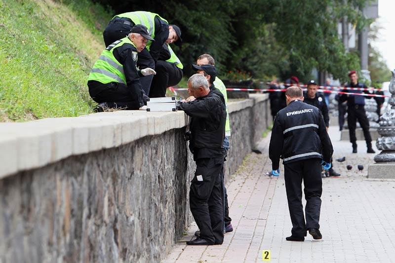 “Щойно на вул. Грушевського був “теракт”, кидали вибуховий пакет по машині Азербайжанського посольства… Не докинули!!!! постраждала жінка і хлопець, які йшли поруч…”, – повідомляють у соцмережах очевидці. Також на місці інциденту була присутня дитина, у неї легке ушкодження коліна.