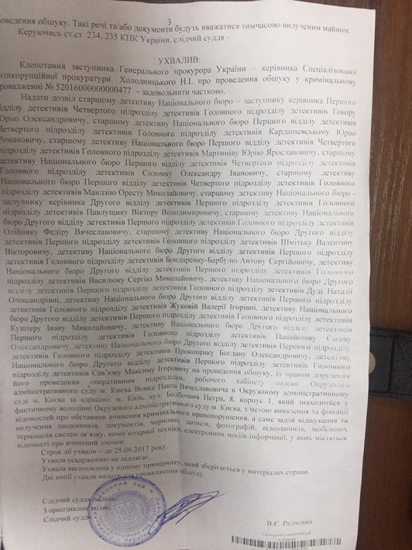 P. S. Природно, нікому жодних офіційних документів люди з нашивками НАБУ не показували”, – написав у Фейсбуку суддя.